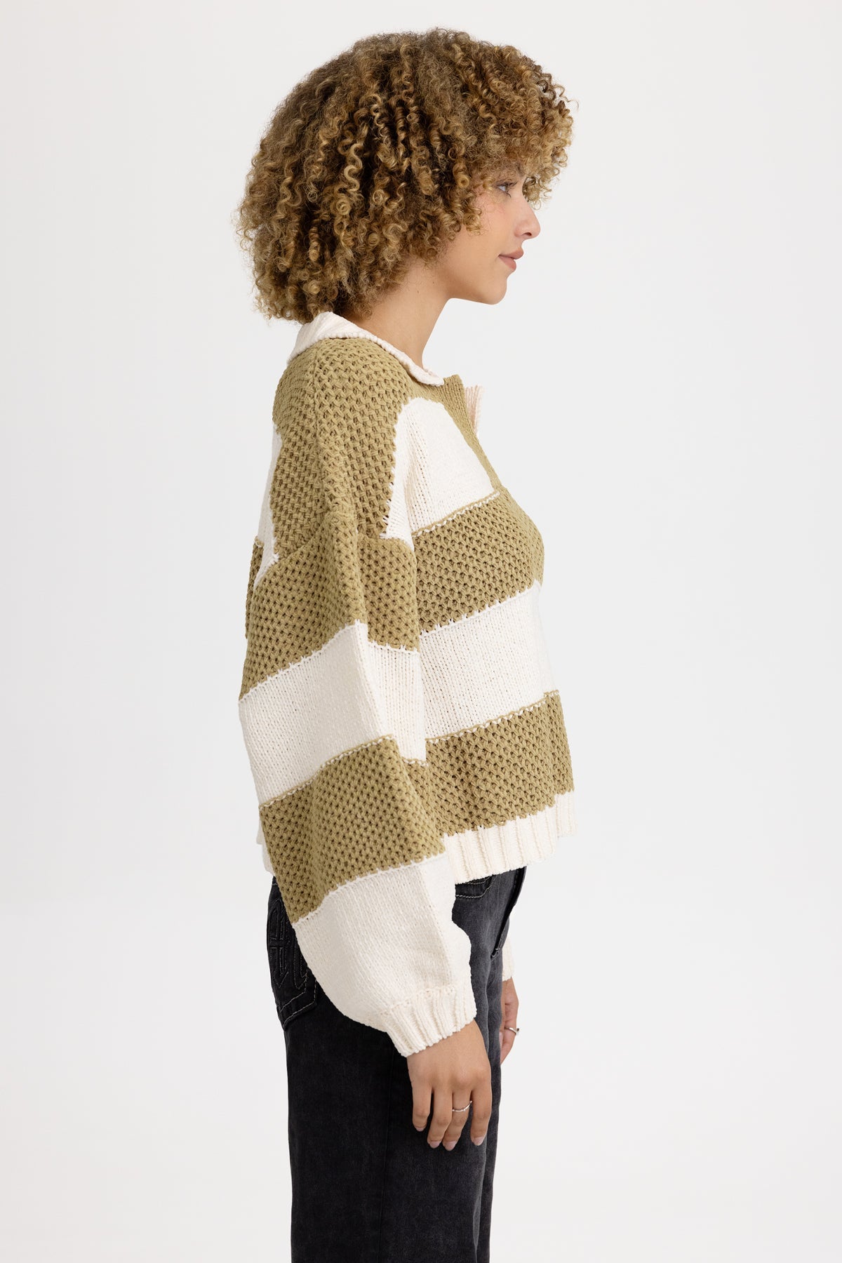 Embrace cozy fall vibes with the Miss Me Academie Sweater. Featuring a classic striped design and a sharp collar, it effortlessly blends preppy charm with an academia-inspired look. Perfect for layering on crisp autumn days, this sweater adds a playful touch to your wardrobe while keeping you comfortably stylish.