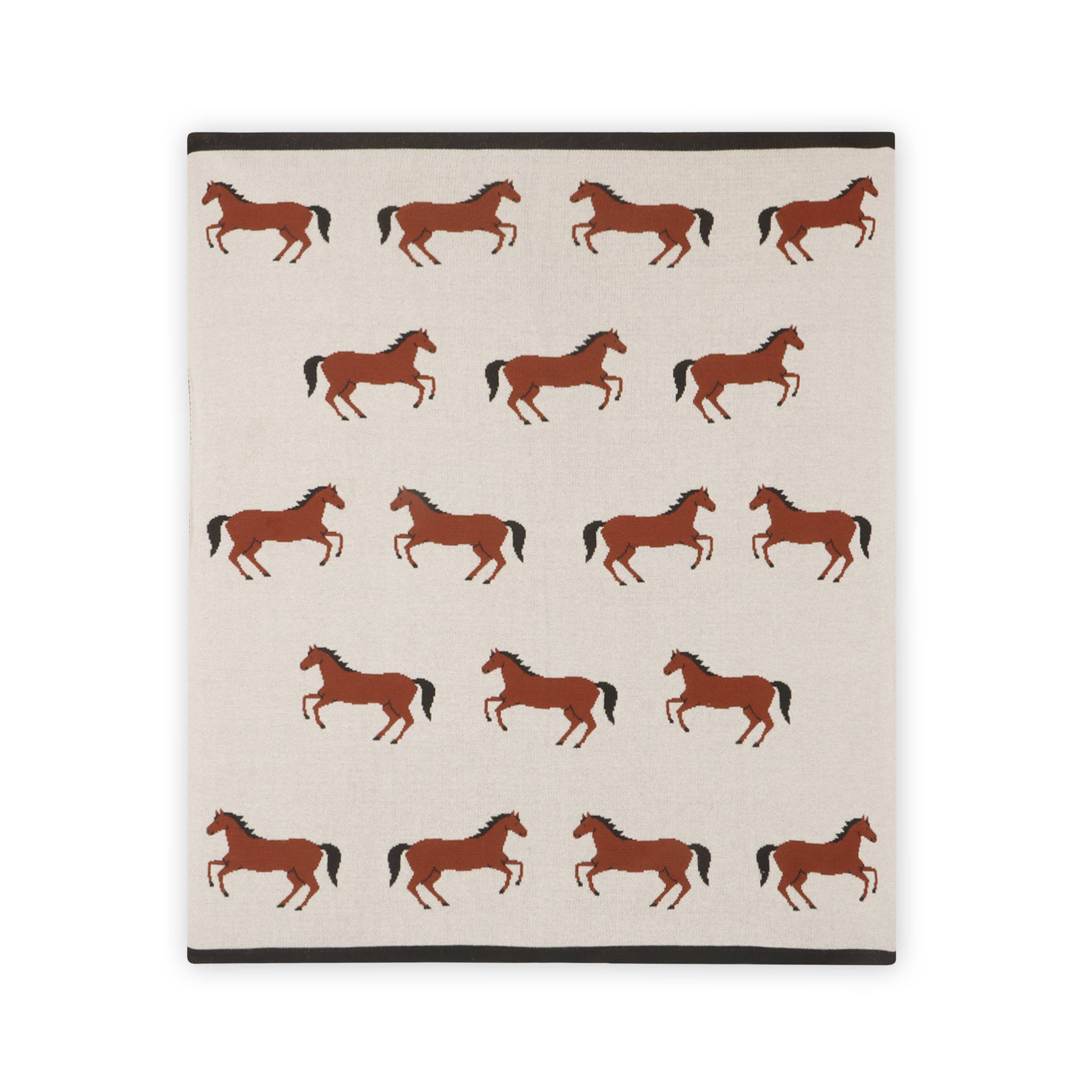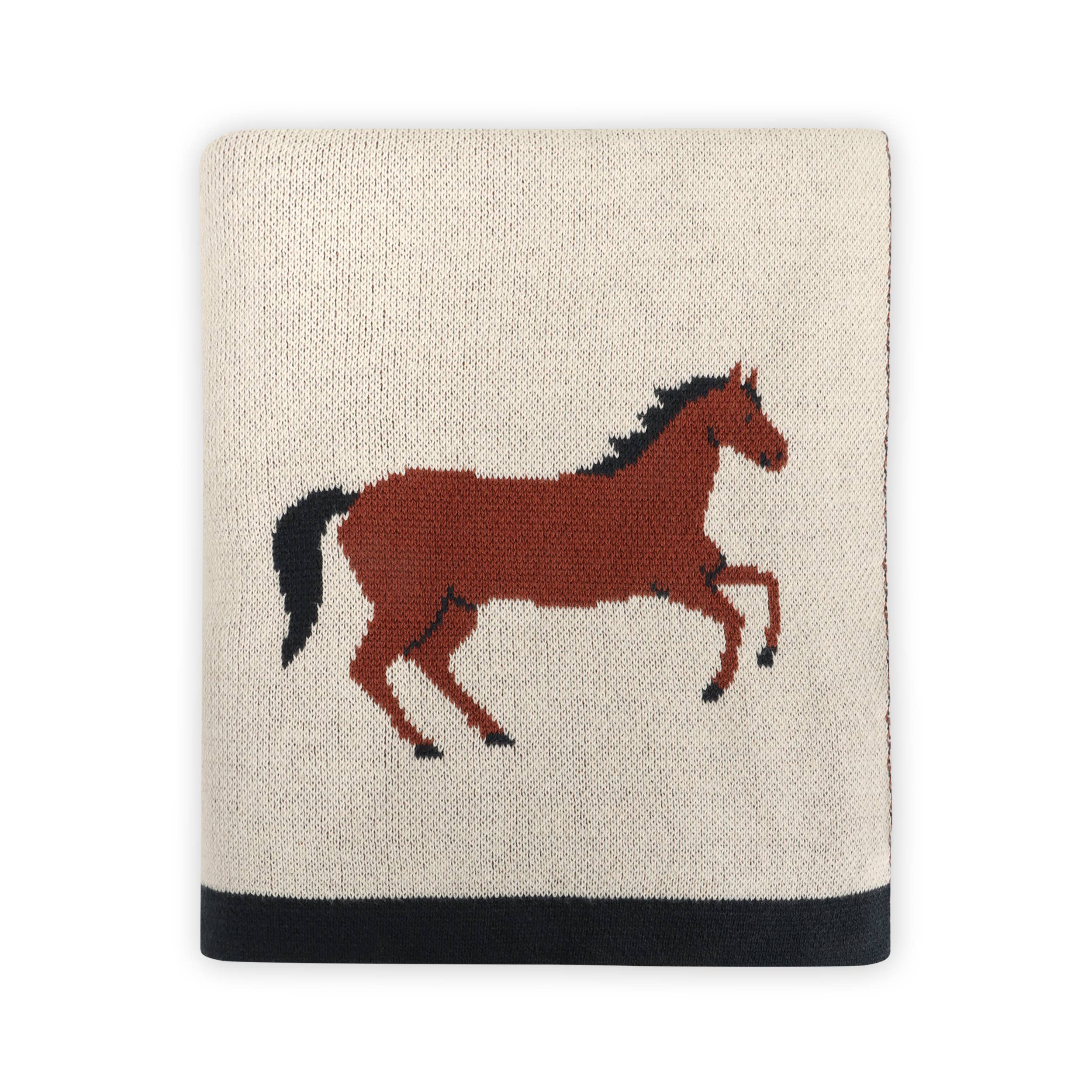 Gallop into coziness with our Organic Cotton Jacquard Sweater Knit Baby Blanket. Soft, sustainable, and adorned with an adorable horse motif! Perfect for sweet dreams and endless cuddles.