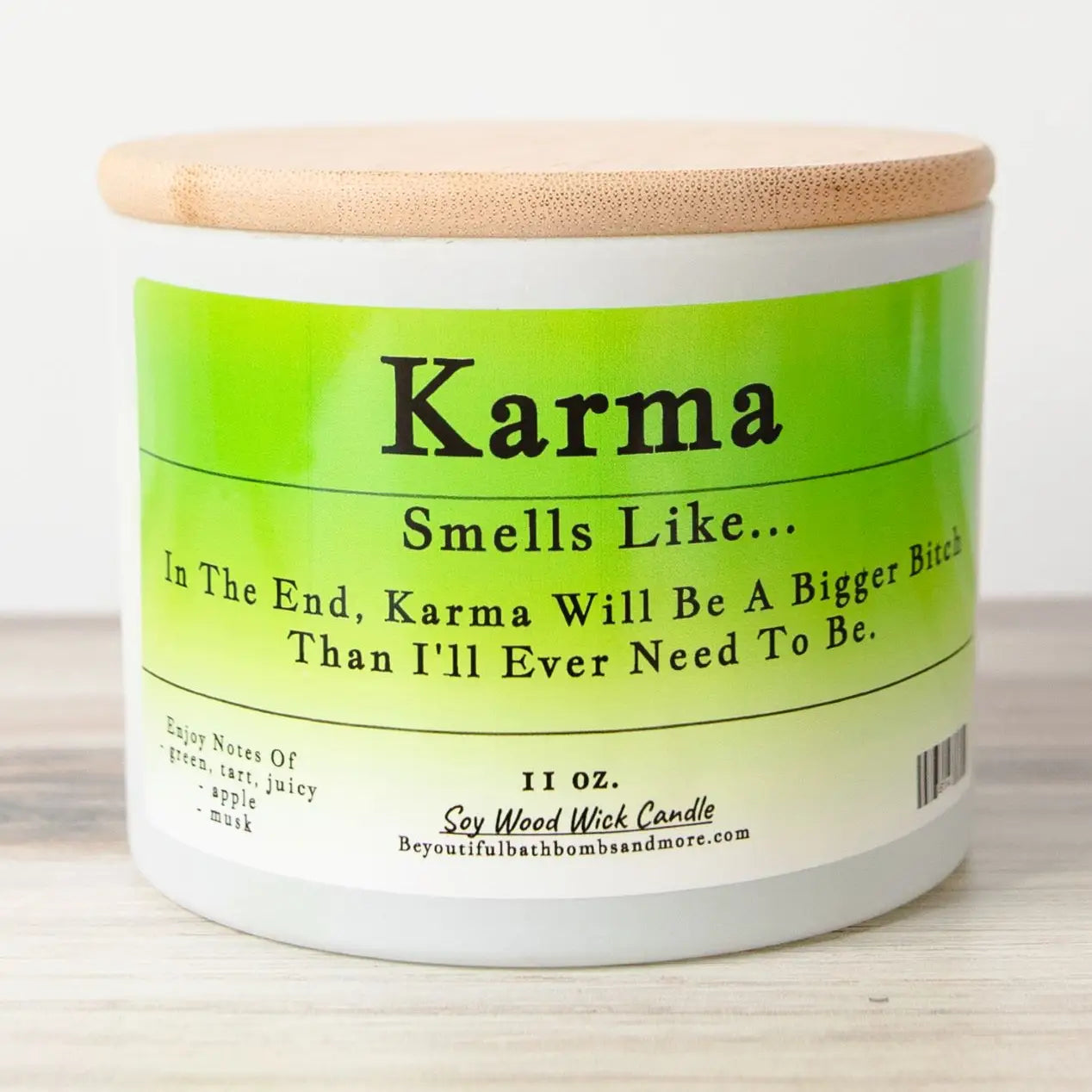 Karma: The perfect candle when you're in a sassy mood! This Karma Candle is Green Apple scented. Karma Always Gets Ya!