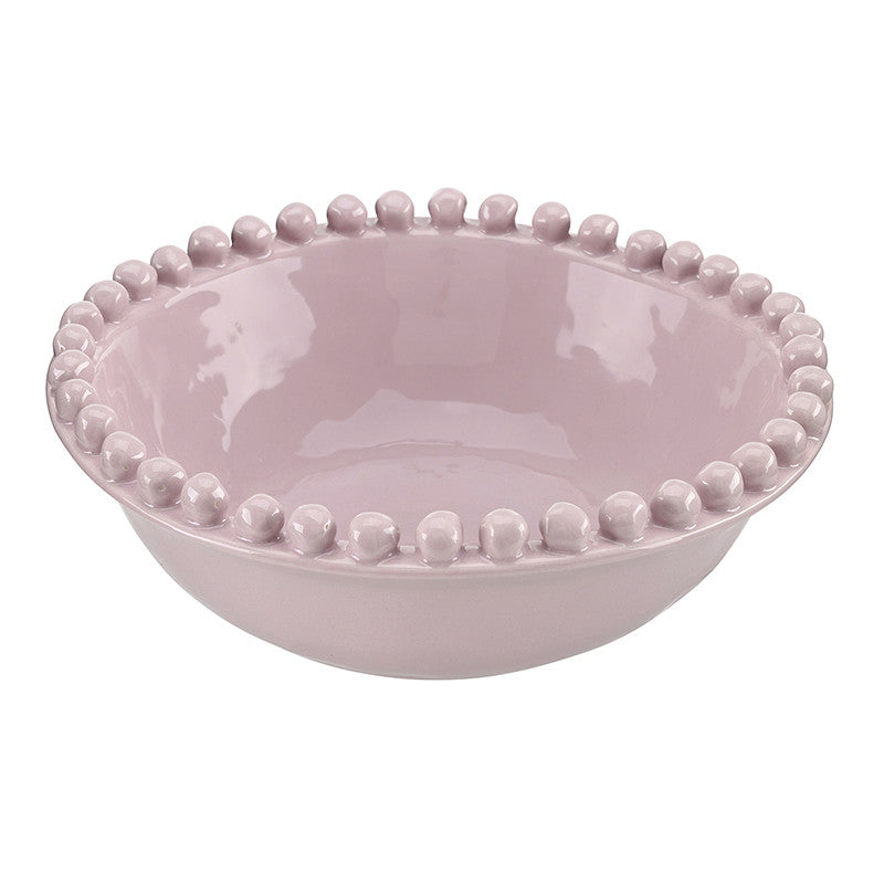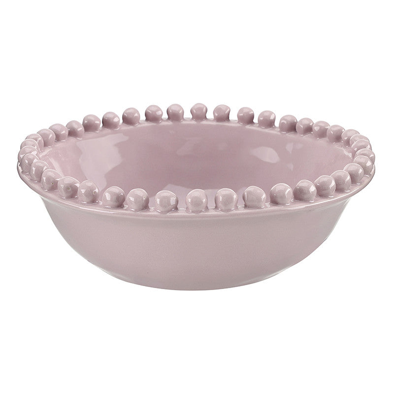 Handcrafted ceramic bowl in soft lilac ash with delicate dotted detailing along the rim. Perfect for displaying treasured keepsakes, jewelry, or everyday essentials with understated elegance. The generous size and neutral-warm palette complement any décor style, while the tactile dotted edge adds visual interest and invites touch. A versatile piece that bridges functional storage and curated home styling.