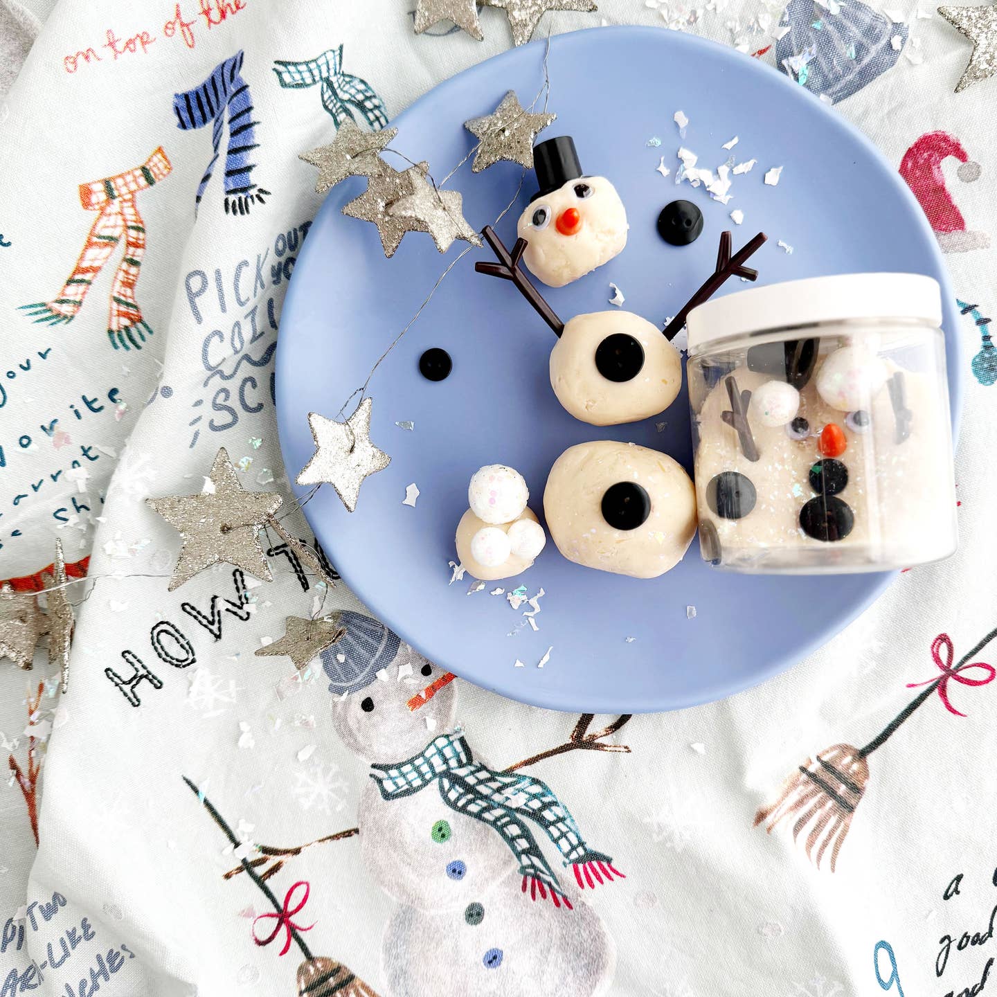 Snowman Mini Dough to Go Kit: The Snowman Mini Dough-To-Go is the perfect holiday dough activity to celebrate the winter season! Build a Frosty Snowman and accessorize him with a carrot nose, arms, buttons, and a hat! EGKD has the perfect gift for Christmas and Holiday fun! Includes: 4 oz White (Marshmallow) KidDough, Top Hat, Googly Eyes, Carrot Nose, Stick Arms, Buttons and Foam Snowballs Mini Dough-To-Go™ Play Kits are the perfect solution for screen-free grab and go entertainment! Ideal for road trips, airplanes, restaurants, hotels and more. KidDough is the best way to play dough! Handmade in the USA Recommended for Ages 3+ Scent: Marshmallow Ingredients: Wheat Flour, Salt, Canola Oil, Cream of Tartar, Water, Food Coloring, Organic Potassium Sorbate, and Natural Fragrance
