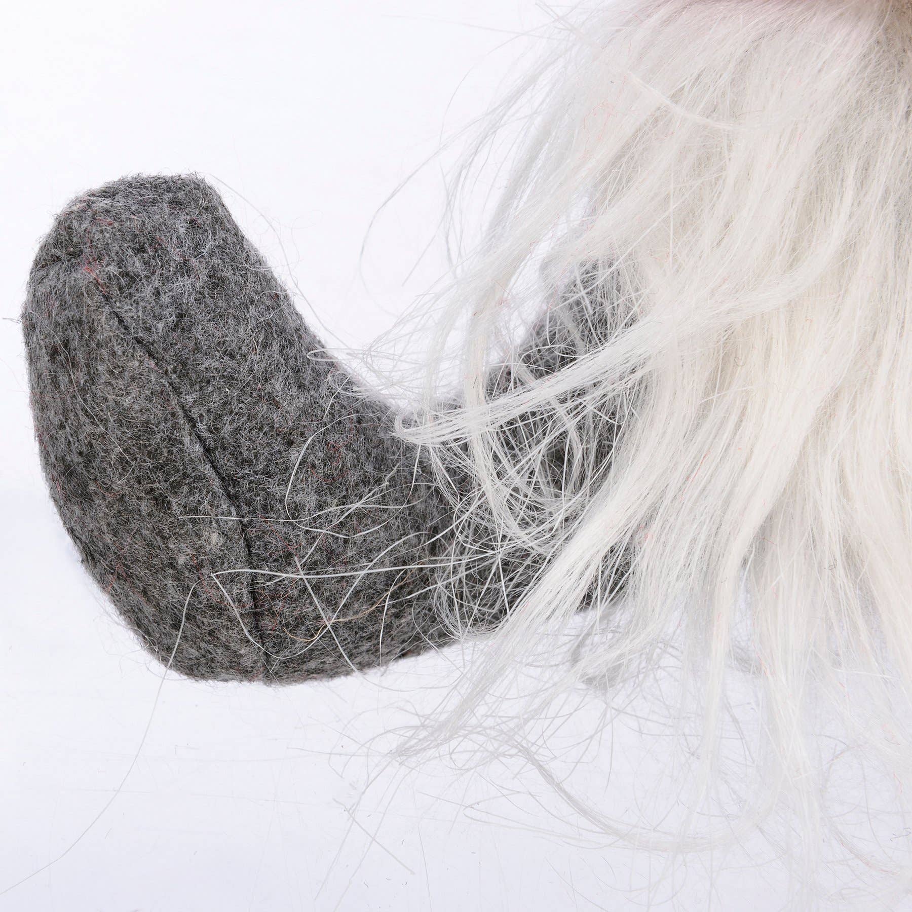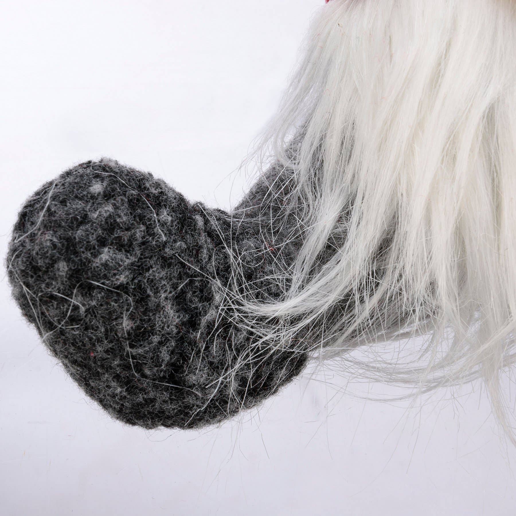 A set of two felt sitting gnomes with red knit hats, fluffy beards, and fabric noses for added interest. Small gnome features a string loop for easy hanging and makes a perfect Christmas ornament. Set pairs well with other holiday gnome items for a cohesive Christmas display.
