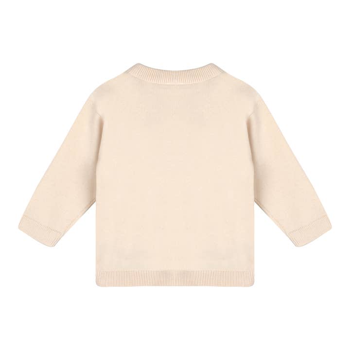 The knit design of the sweater provides a gentle stretch, allowing for a snug fit that moves with your baby's every motion. Free from harmful chemicals, dyes, and synthetic fabrics, our organic baby clothing is ideal for sensitive skin, giving parents peace of mind while prioritizing sustainability.