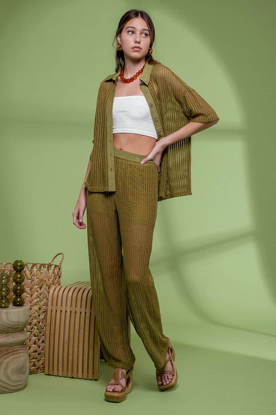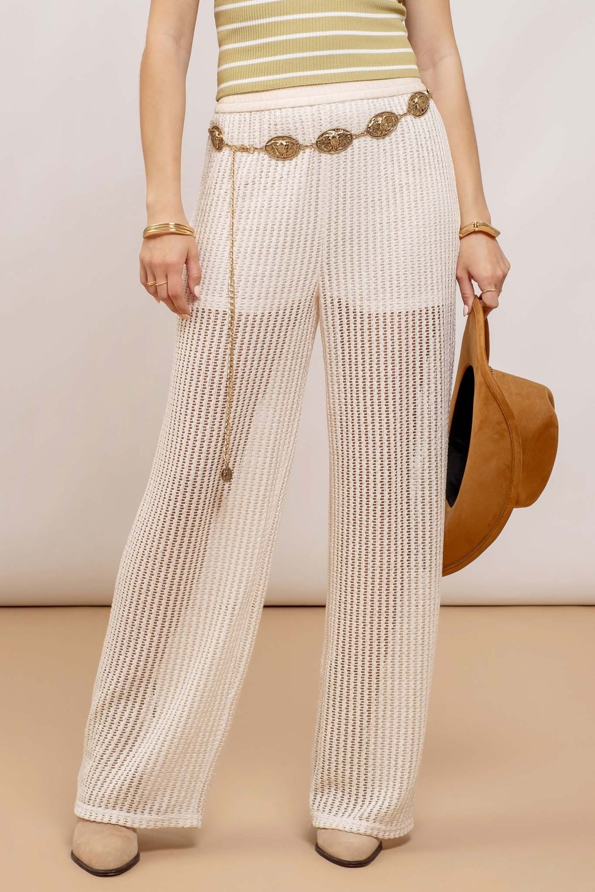 Step into effortless style with the Vivianne High Waist Crochet Pants. Featuring a playful sheer knit crochet design and a comfortable elasticized waist, these wide-leg pants combine breezy elegance with easy wear. Fully lined for coverage and crafted from soft polyester and a cozy rayon-nylon blend, they promise both comfort and flair for your sunny day adventures or relaxed evenings out.